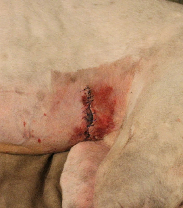 But luckily..10 days later..sutures removed and he is doing great!!! He is going to soon look like Joan Rivers with all these 'tummy tucks' (4 total so far)